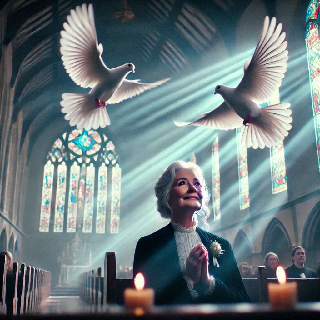Foi então que, no meio da missa, algo surpreendente aconteceu. No alto da igreja, um casal de pombos surgiu, dançando de maneira graciosa ao som da música. A beleza daquele momento era tão marcante que parecia mágico, como se fossem eles, Carla e Pedro, em outro plano, mostrando que o amor deles transcendia a vida. Carla, com os olhos marejados, cessou as lágrimas por um instante, abriu um sorriso leve e percebeu que, de fato, seu amor por Pedro não havia acabado. Ele estava apenas começando de uma forma diferente, mas eterna.