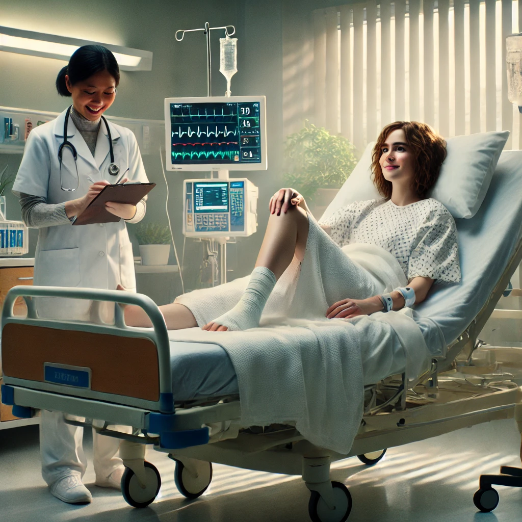 A enfermeira, percebendo que a paciente, em razão das sequelas da cirurgia, estava eufórica, resolveu aguardar a primeira visita do médico antes de responder. A fim de manter o astral de Ella elevado, perguntou: